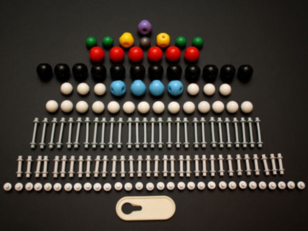 Organic Chemistry Set. Includes addition of the 3 holed ball (trigonal planar) and the five-holed ball (trigonal bipyramidal); required for CHEM 1402