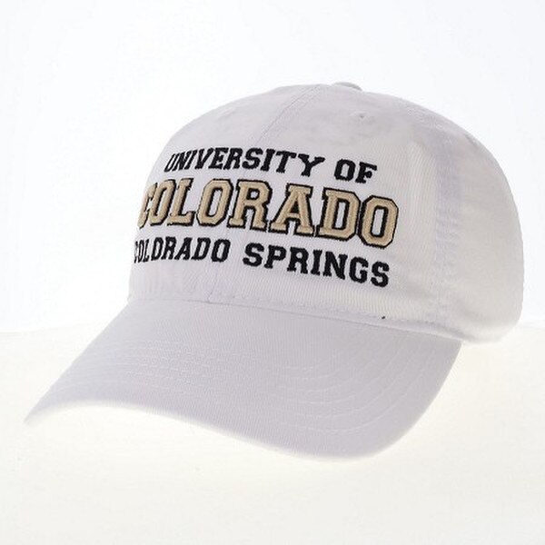Legacy UCCS Full Name EZA Hat. Cotton twill, classic EZA cap features an unstructured crown, full curved visor and an open back strap closure. Full crown top-stitch, garment wash, traditional brass slide buckle, cotton twill sweatband and taping. Embroidered logo.