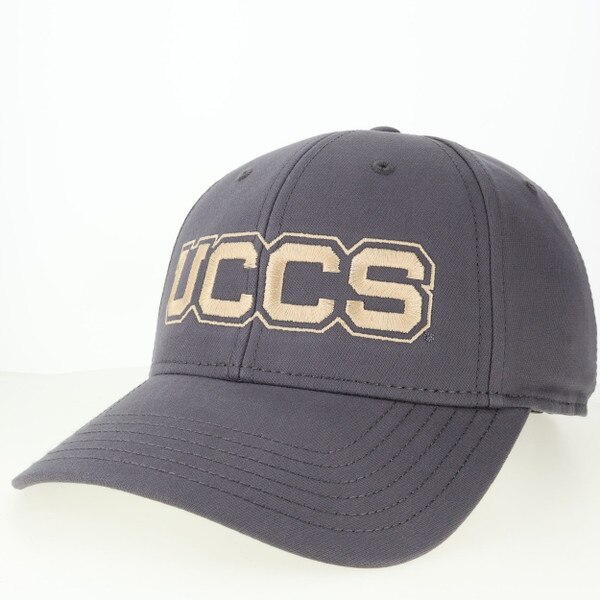 UCCS Legacy Drive Hat Dark Grey from L2 Brands. Sleek and minimalistic Driver hat offer a comfortable and classic silhouette. 100% cotton twill with sueded fabric finish. Structured low-profile, 6 panel design. Self-fabric Velcro closure. One size fits most. Features an embroidered UCCS logo.
